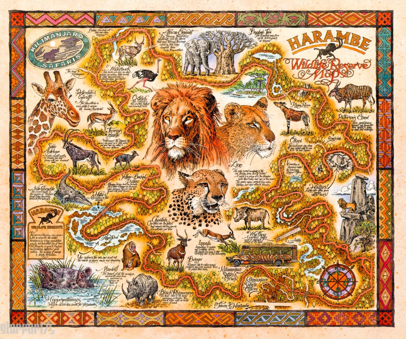 Here’s a postcard from 1998. The Kilimanjaro Safaris was our favorite ride when the park first opened, and this postcard shows a map of the entire safari.