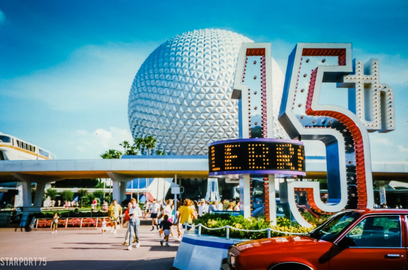 All this news about the start of Disneyland’s 60th anniversary celebration this weekend made me dig through my photos, and I found this one of Epcot during Walt Disney World’s 15th Anniversary Celebration. This was taken in June 1987 during our family trip.